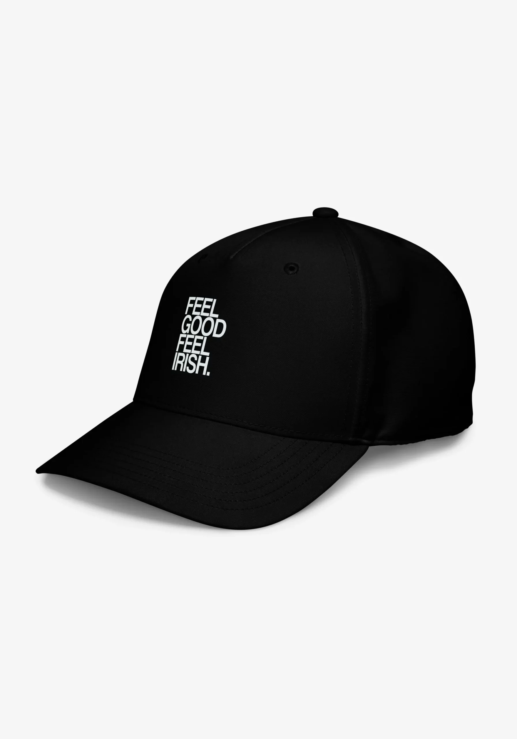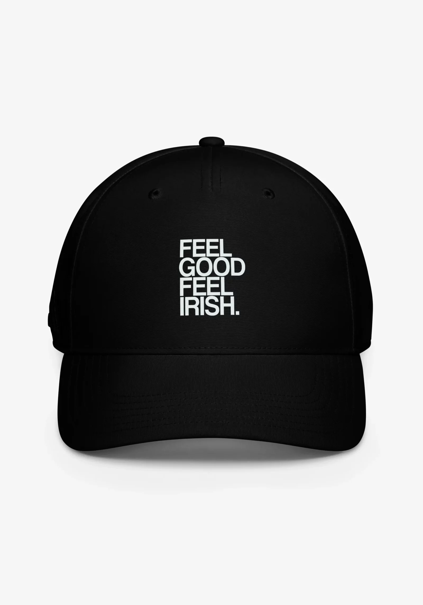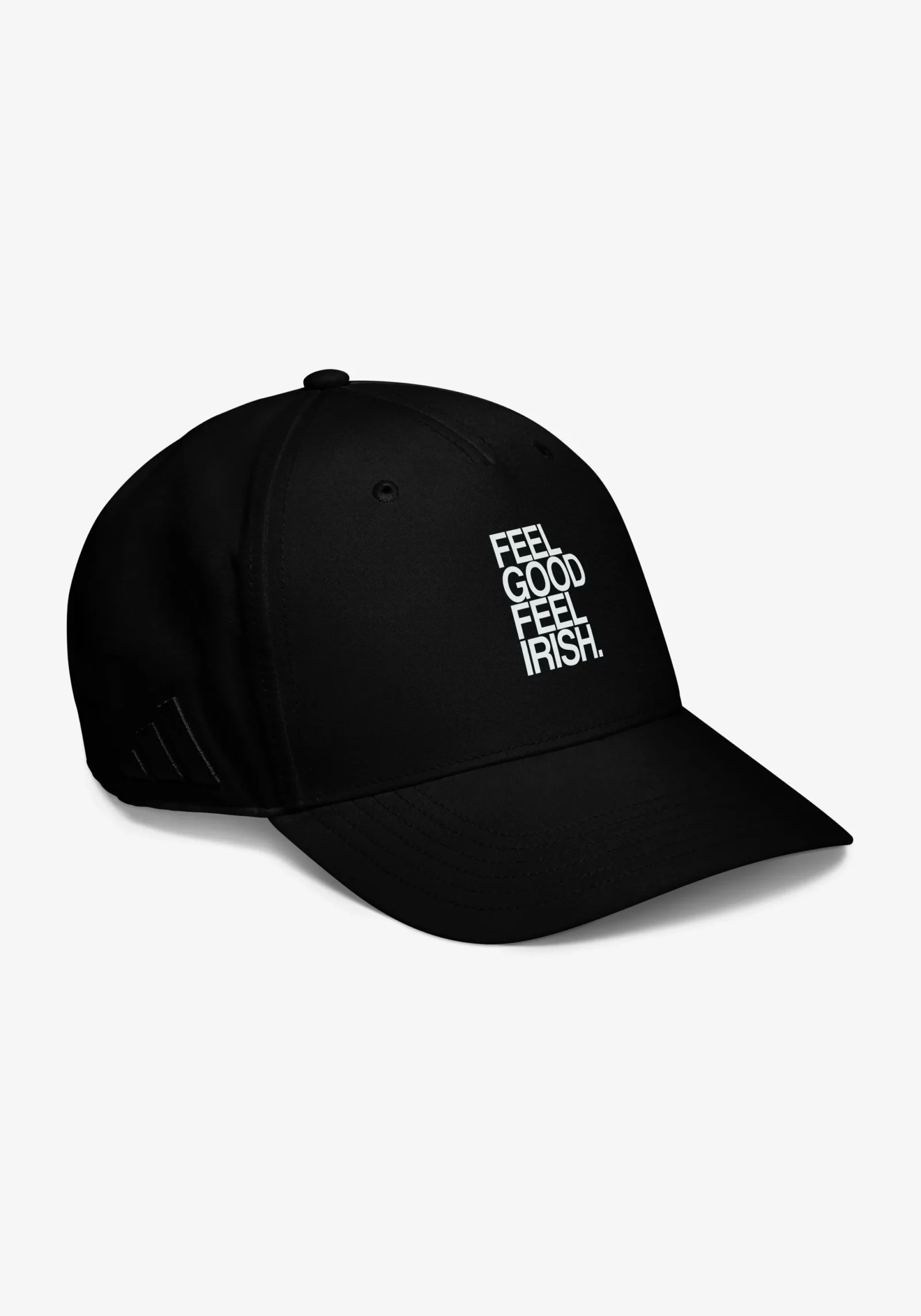 Black Adidas hat, large front print reading Feel Good Feel Irish .