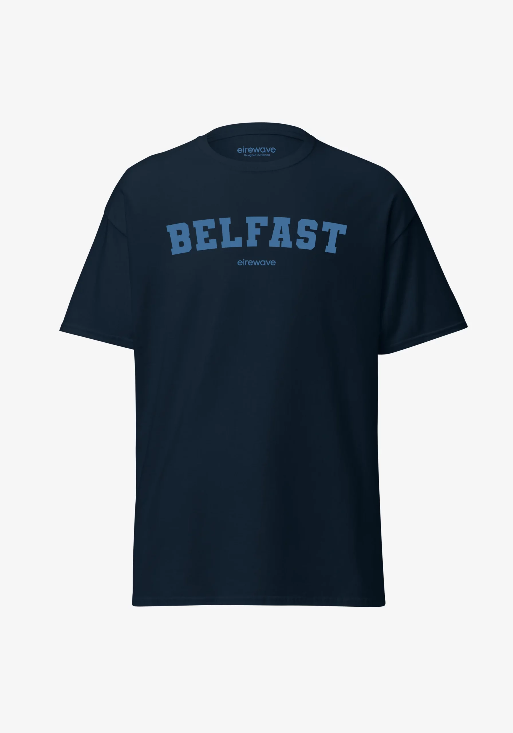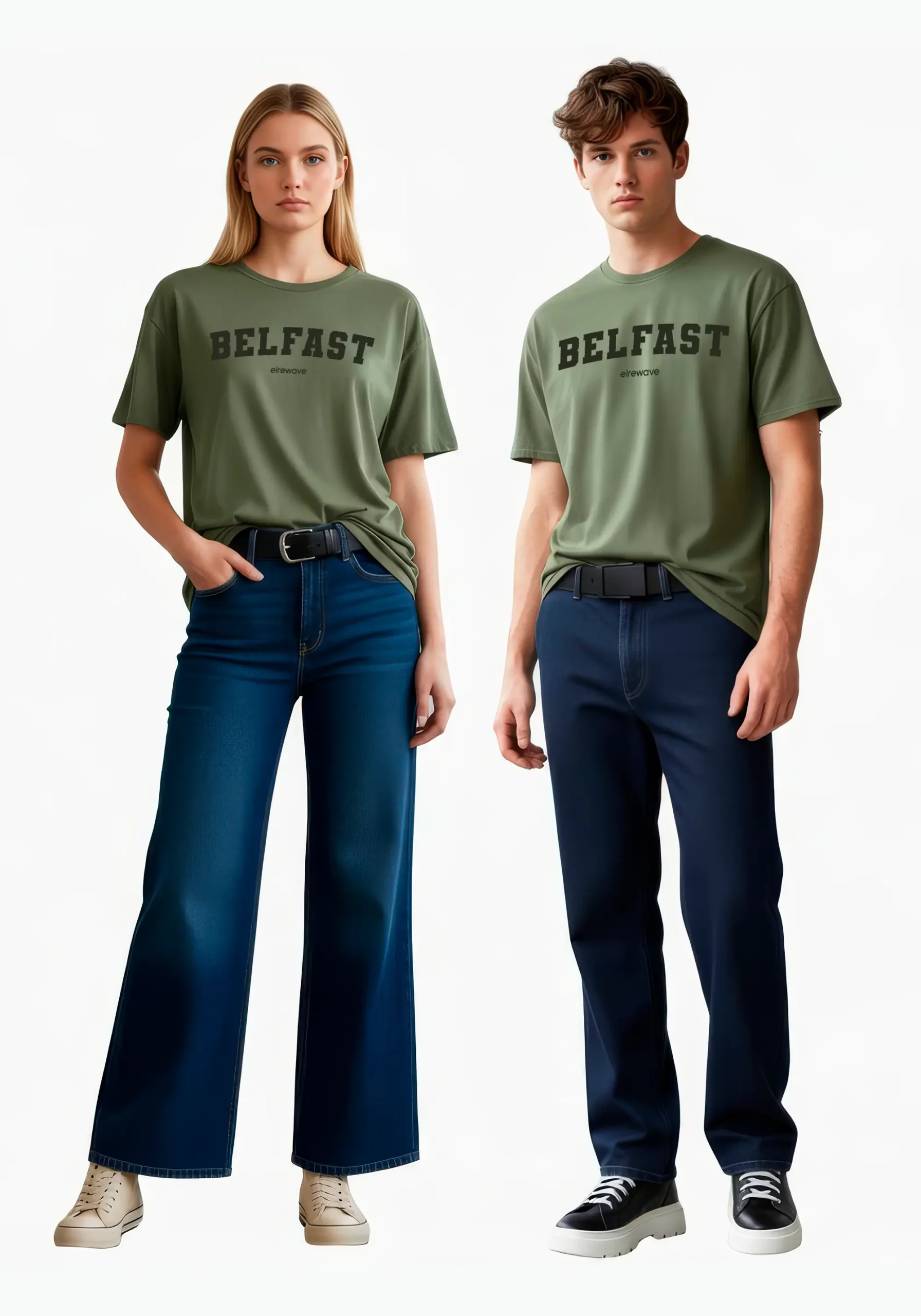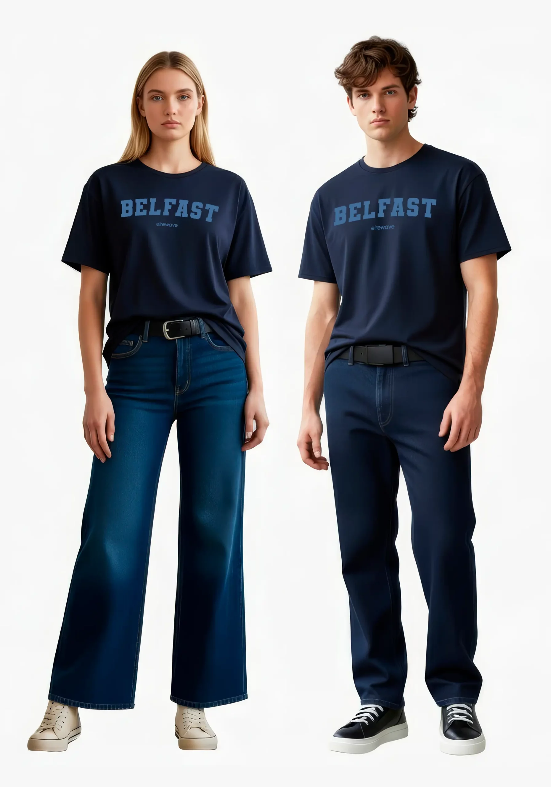 Straight-fit T-Shirt with ‘Belfast’ print, a subtle front Eirewave logo, and a rear monogram below the neckline.